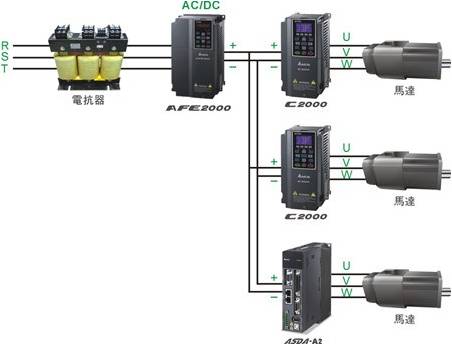 支持并接多個(gè)DC bus之交流驅(qū)動(dòng)器,如下圖: