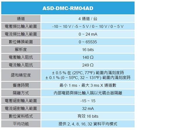 > 臺達(dá)分布式遠(yuǎn)程4通道模擬輸入模塊