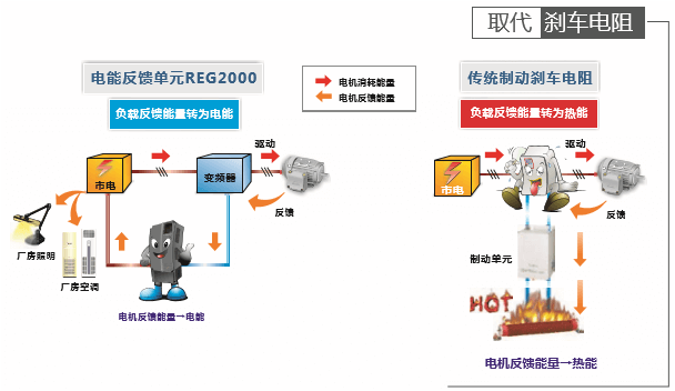 替代制動(dòng)煞車電阻,降低熱損失、節(jié)省能源消耗與空間費(fèi)用。