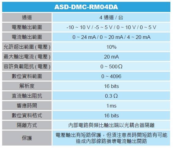 DMCNET 4 通道模擬輸出模塊 - ASD-DMC-RM04DA
